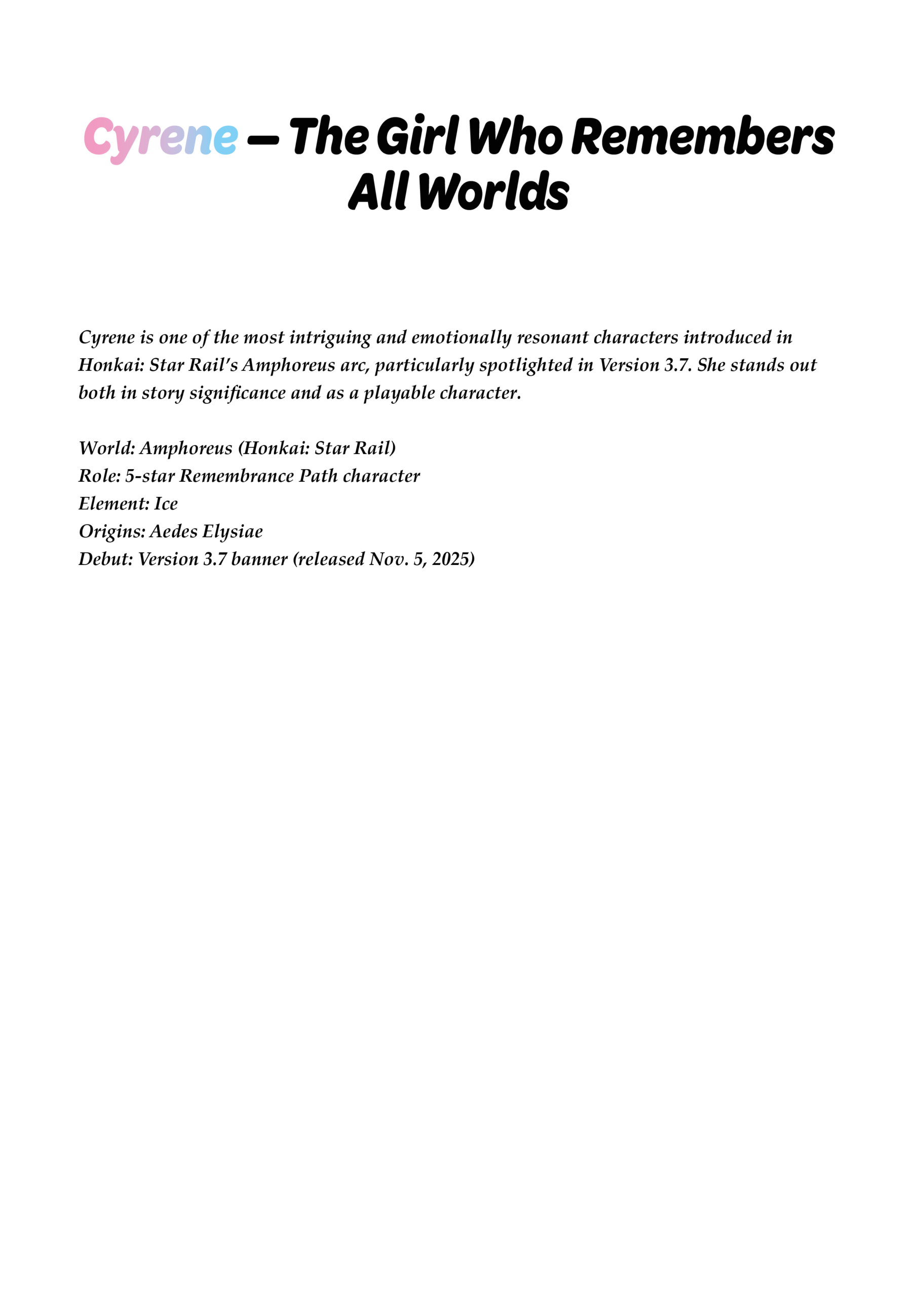 Ich hoffe, dass Ihnen mein Magazin über Cyrene aus Honkai: Star Rail und meine kreative Gestaltung gefallen.